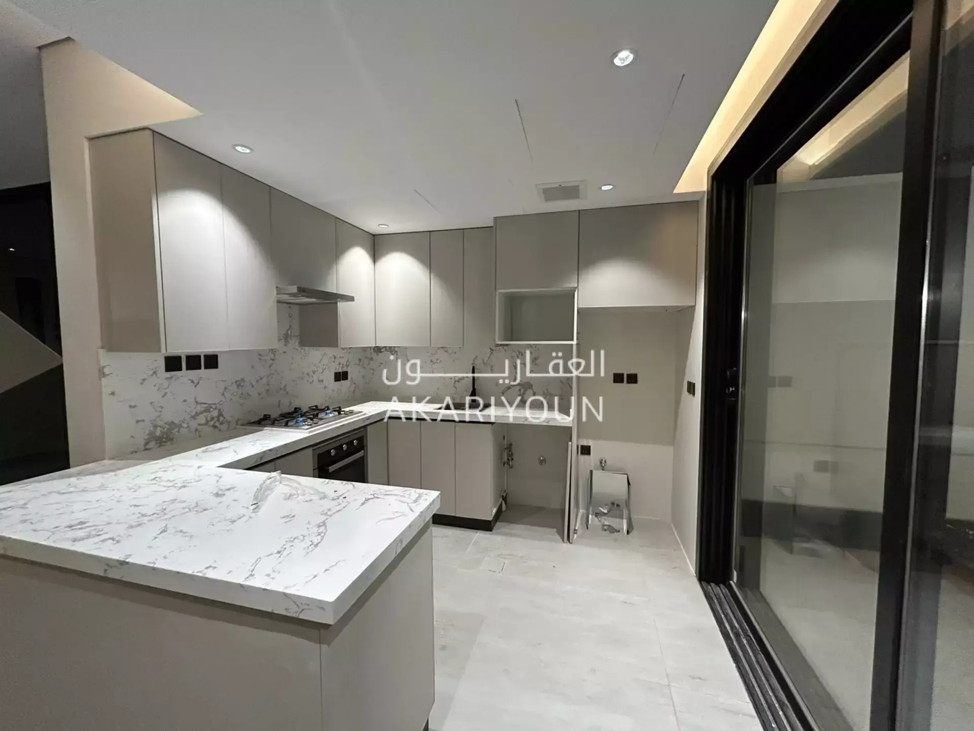 صالة كبيرة + مطبخ+ ارتداد خارجي (تكيف مركزي الدور الارضي )