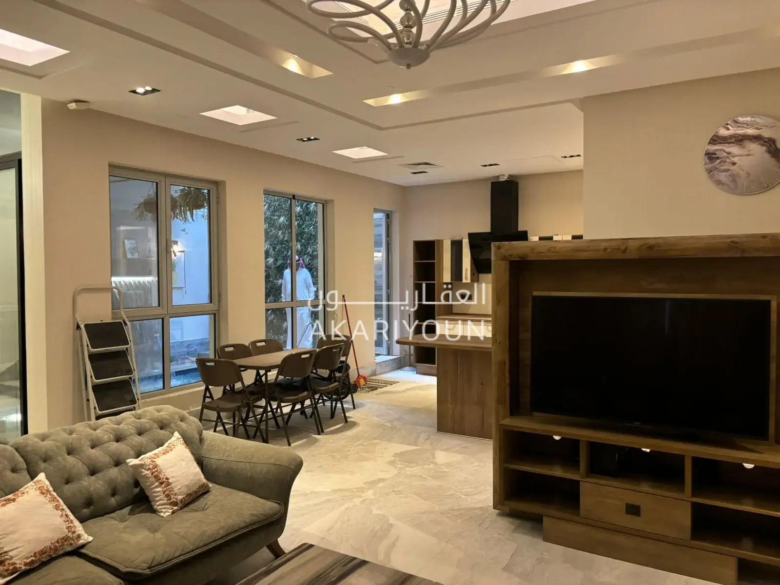 🛋️ صالة معيشة فسيحة مؤثثة بالكامل درج في الصالة مصعد نوع شلندر مسبح مطل على الصالة مدخل من الحوش خاص لنساء