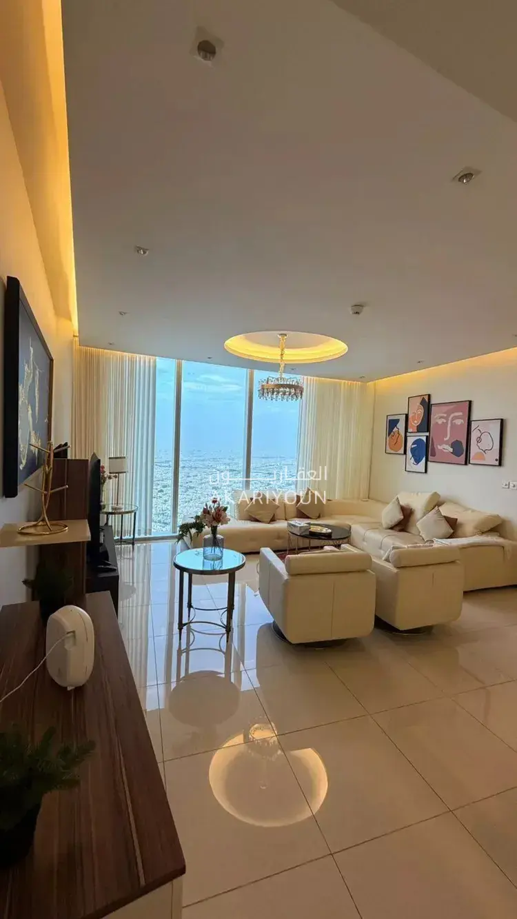 غرفة ماستر بإطلالة + صالة واسعة بإطلالة +مطبخ